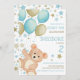 Invitación Acuarela Teddy Bear Blue Gold Boys Cumpleaños