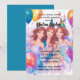 Invitación Acuarela Tres niñas celebrando cumpleaños