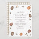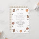Este elegante tema de calabaza, la invitación para el primer cumpleaños, es perfecto para las reuniones de duchas de bebé en otoño. Cuenta con calabazas naranjas acuáticas, calabazas marrones y hojas caídas. El dorado le da al otoño un ambiente de casa de campo vintage.