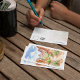Esta postal cuenta con un retrato acuático del Valle del Monumento en la frontera de Arizona Utah.