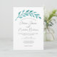 Una bella colorida verde azulada vina de hojas pone los nombres de la pareja boda en esta sencilla pero encantadora invitación a la boda en la playa. Esta encantadora invitación botánica turquesa es elegante y minimalista para un boda de playa cerca del océano. La elegante tipografía le da un toque de moda para una ceremonia de verano.