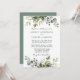 Moderna y elegante acuarela La tarjeta de invitación a la boda de la vegetación botánica incluye hojas de eucalipto, follaje botánico verde, hojas azul polvorientas y otros hermosos paisajes botánicos. Sage Green Back.