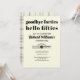 Una sofisticada invitación para una celebración de un hito ¡Cincuenta y sin defectos! Esta moderna y elegante invitación es la manera perfecta de reunir a familiares y amigos para una celebración de 50 años. Diseñado con un suave fondo blanco pastel y un elegante tipo de letra serif con Goodbye Forties, Hello Fifties, esta invitación irradia sofisticación. El diseño de la parte posterior, de color dorado, aporta un toque refinado. Con texto personalizable, este diseño se adapta a cualquier ambiente elegante, divertido o relajado fiesta. Comienza la cuenta regresiva - personalizar y pide la tuya hoy! ¡Agradecemos su apoyo! ¿Te gusta este diseño? ¡Golpea como!