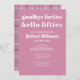 Una sofisticada invitación para una celebración de un hito ¡Cincuenta y sin defectos! Esta moderna y elegante invitación es la manera perfecta de reunir a familiares y amigos para una celebración de 50 años. Diseñado con un suave fondo púrpura pastel y un elegante tipo de letra serif con Goodbye Forties, Hello Fifties, esta invitación irradia sofisticación. El diseño de la parte posterior, de color dorado, aporta un toque refinado. Con texto personalizable, este diseño se adapta a cualquier ambiente elegante, divertido o relajado fiesta. Comienza la cuenta regresiva - personalizar y pide la tuya hoy! ¡Agradecemos su apoyo! ¿Te gusta este diseño? ¡Golpea como!