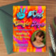 Disfruta tu fiesta de cumpleaños número 10 con esta invitación temática de los 70. Se utilizan combinaciones de colores vibrantes en el diseño para canalizar la emocionante era retro de los 70, con efectos de letra enfatizados para proporcionar el estilo libre y brillante de los 70.