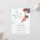 Curada y simple invitación de despedida con el ilustracion de una chica negra flotando con sus coloridos globos. Excelente para graduaciones y fiestas jubilatorios. Ilustrado y diseñado por Patricia Álvarez.