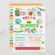 Invitación de Fiesta de grupos de fin de año escolar, esquema de colores primarios adecuado para cualquier edad. Para cambios adicionales (color de fuente, estilo de fuente, eliminar o mover elementos, cambiar otras palabras *las palabras ESCUELA, y POOL, no son editables), haga clic en personalizar, desplácese hacia abajo y haga clic en el vínculo "Editar usando la herramienta de diseño".