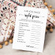 Compra este juego y disfruta de una tarjeta de alta calidad Adivina el precio adecuado para tu evento! ¿Puedes adivinar el precio correcto? Diseño blanco y negro neutro en género.