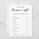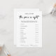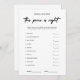 Empieza el fiesta con nuestra moderna tarjeta de juego Adivina el precio correcto de ducha de novia! Este juego lleno de diversión hará que sus invitados adivinen el precio correcto para ganar en grande. En este giro moderno del espectáculo de juegos clásico, los clientes podrán adivinar el dólar más cercano al total de los objetos. Con su diseño elegante y su atractivo juego de juegos, este juego de ducha de novias es perfecto para añadir un toque de emoción a cualquier celebración. Nuestra tarjeta de juego Adivinar el Precio Adecuado para la Ducha de Novias no es solamente una explosión a jugar, sino que también sirve como un elegante keepsake para la futura novia. Esta tarjeta de juegos está diseñada con atención a los detalles y presenta un diseño contemporáneo que complementa cualquier tema moderno de la ducha de novias. Con nuestra tarjeta de juego en mano, los huéspedes serán entretenidos y desafiados cuando traten de adivinar los precios. Es una gran manera de romper el hielo y hacer que todos participen. Además, es una oportunidad maravillosa para que la novia y el novio recuerden su propio viaje juntos. Haga que su ducha de novia sea inolvidable con nuestra tarjeta de juego "Adivina la ducha a buen precio". Añade algo de emoción, risa y competencia amistosa a tu día especial. Prepárate para jugar y crear recuerdos que durarán toda la vida!