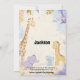 Celebra tu segundo cumpleaños con esta encantadora jirafa y una invitación temática de elefantes. Con una suave lavanda y una paleta de colores azul cielo, este diseño capta el espíritu lúdico de un día especial para niños pequeños. Perfecto para un fiesta con temática de aventura al aire libre, esta invitación marca la pauta para una celebración llena de diversión. Personalice los datos de su fiesta y haga que esta invitación sea única para usted.