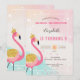 Invitación Adorable Purpurina Rosa Flamingo Cumpleaños