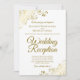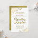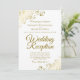 Esta simple invitación está diseñada para los invitados a la recepción pero no a la ceremonia de boda en sí. Cuenta con un diseño elegante y sofisticado con letras de escritura dorada de fantasía sobre un fondo blanco clásico y rizos y volutas doradas de falso foil ornamentado en las esquinas. ¡Hermosa manera de invitar a tus amigos y familiares a celebrar contigo!