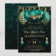 Invitación Adornos Elegantes de Navidad en Verde Teal y Dorad
