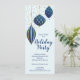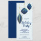 Invitación Adornos Navideños de Oro Azul Fiesta