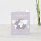 Invitación Baby Shower de pasaporte neutro con temática de viajes con fondo morado de lavanda suave, ilustracion de globo con acento dorado y detalles de eventos de personalizable.