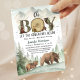 Invitación Adventure Begin Bear Boy Baby Shower Woodland