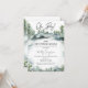 Adventure Begins Wilderness Scene Baby Shower Invitation Esta moderna aventura comienza con la invitación a la ducha de bebé, oh boy, que incluye una atmosférica decoración acuática con montañas y pinos verdes, así como una imagen de cabecera de caligrafía en una línea. Ideal para la ducha de bebé de invierno de un niño.