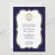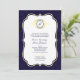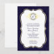Los azules marinos y el amarillo afiligranados/brocado confinan la invitación del boda que ofrece un monograma