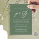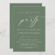 Marque el comienzo de su eternidad con elegancia usando nuestra contemporánea tarjeta de invitación a la celebración del boda con temática verde sabio del bosque, "Feliz eterno después del Fiesta". Perfecto para las parejas que ofrecen su alegre ocasión, esta invitación exuda sofisticación con un toque de alegría, sentando el escenario para un evento memorable. Adornado con un tema de diseño de guiones modernos y atemporales, le da un toque de encanto refinado a sus festividades. Diseñada por TeeshaDerrick, esta invitación promete capturar maravillosamente tu historia de amor.