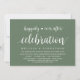 Anuncie su más feliz después con estilo con nuestra moderna tarjeta de invitación de fiesta de boda de diseño de guiones (temática verde Sage). Nuestra tarjeta de invitación a la celebración de la fiesta de la cena y el baile es ideal para las parejas que han decidido salir y quieren albergar a un fiesta para celebrar su unión. Con un diseño sofisticado pero lúdico, esta invitación seguramente marcará el tono para un evento inolvidable. La tarjeta de invitación presenta un diseño minimalista con un esquema en blanco y negro, añadiendo un toque de elegancia eterna a su celebración. Diseñado por TeeshaDerrick