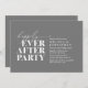 Anuncie y comparta su más feliz de siempre con estilo con nuestro moderno diseño de temas grises oscuros (Afortunadamente siempre después del fiesta) tarjeta de invitación a la celebración de la independencia de los bodas. Es ideal para las parejas que han decidido celebrar su mejor día. Con un diseño sofisticado pero lúdico, esta invitación seguramente marcará el tono para un evento inolvidable. La tarjeta de invitación incluye un diseño de escritura moderno y minimalista, añadiendo un toque de elegancia eterna a tu celebración. Diseñado por TeeshaDerrick