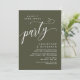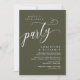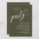 Anuncie y comparta su más alegre estilo con nuestro moderno diseño temático (Afortunadamente siempre después de la fiesta) tarjeta de invitación a la celebración de boda. Es ideal para las parejas que han decidido celebrar su mejor día. Con un diseño sofisticado pero lúdico, esta invitación seguramente marcará el tono para un evento inolvidable. La carta de invitación presenta un diseño moderno, un temática de color verde oliva intemporal, añadiendo un toque de elegancia eterna a su celebración. Diseñado por TeeshaDerrick