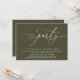 Anuncie y comparta su gusto por el estilo con nuestro moderno y romántico diseño rústico de estilo verde oliva (Afortunadamente después del fiesta) boda elopement cena almuerzo brunch tarjeta de invitación. Es ideal para las parejas que han decidido celebrar su mejor día. Con un diseño sofisticado pero lúdico, esta invitación seguramente marcará el tono para un evento inolvidable. La tarjeta de invitación incluye un diseño de escritura moderno y minimalista, añadiendo un toque de elegancia eterna a tu celebración. Diseñado por TeeshaDerrick