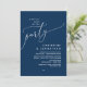 Anuncie y comparta su más feliz de siempre con estilo con nuestro moderno y elegante diseño romántico azul marino (Afortunadamente siempre después del fiesta) boda de la carta de invitación a la celebración de la fiesta de la independencia. Es ideal para las parejas que han decidido celebrar su mejor día. Con un diseño sofisticado pero lúdico, esta invitación seguramente marcará el tono para un evento inolvidable. La tarjeta de invitación incluye un diseño de escritura moderno y minimalista, añadiendo un toque de elegancia eterna a tu celebración. Diseñado por TeeshaDerrick