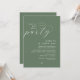 Anuncie y comparta su más feliz después de todo con nuestro moderno diseño romántico de temática verde salvia (Afortunadamente siempre después de fiesta) boda de la celebración de la celebración de la independencia con la tarjeta de invitación. Es ideal para las parejas que han decidido celebrar su mejor día. Con un diseño sofisticado pero lúdico, esta invitación seguramente marcará el tono para un evento inolvidable. La tarjeta de invitación incluye un diseño de escritura moderno y minimalista, añadiendo un toque de elegancia eterna a tu celebración. Diseñado por TeeshaDerrick