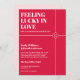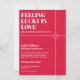 Moderno y mínimo tema boda "Lucky in Love" con cuatro trébol de hojas en formas cardíacas que conectan corazones de cuatro lados en colores rojo y rosa suave.