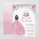 Host a magical and inclusive celebration with this African American princess tea party invitation. This design features a stunning watercolor princess dress with a shimmering faux sparkle effect and a princess with natural hair. Adorned with elegant pink roses and a classy teacup, it is the perfect choice for a fairytale royal birthday or a whimsical garden party.