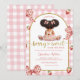 Invitación Afro African Girl Pink Bow strawberry berry sweet