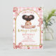 Invitación de cumpleaños africana niña lazo rosa fresa, Invitación de cumpleaños afro fresa primer cumpleaños, Editable fiesta de cumpleaños infantil