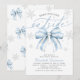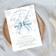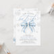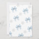 Celebra a tu manojo de alegría con el encanto acogedor del invierno utilizando nuestra invitación de Baby Shower "Baby It's Cold Outside" con lazo azul. Este diseño chic presenta un delicado lazo azul de acuarela enmarcado por copos de nieve plateados y helados y tipografía moderna y elegante, perfecto para crear una atmósfera festiva y invernal.
