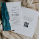 El borde izquierdo de esta elegante y moderna invitación a la fiesta de 50 años cuenta con un verde azulado borde de batido de color azul con un purpurina de imitación plateado. El texto del personalizable combina la escritura a mano de carbón gris, el copperplate y las fuentes cursivas en un fondo blanco. Añadir instrucciones RSVP en la parte posterior de la tarjeta, junto con un código QR que los huéspedes pueden explorar para responder en línea.