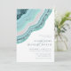 No todos los diseños bodas se crean iguales. Los diseños asimétricos de las piezas en este conjunto impactante de bodas demuestran que eso no es malo. Bandas onduladas de color en contrastantes tonos de azul verde azulado y rosa rubor con un centro de cristal brillante forman un acento geodésico/agato en la mayoría de las piezas del conjunto. El reverso presenta un fondo abstracto de coordinación que recuerda a la piedra vetada con purpurina. La invitación de boda que se muestra aquí incluye lo anterior más una plantilla para agregar los detalles pertinentes del evento de boda. Buscar ID647 para ver todas las piezas de coordinación de este conjunto.