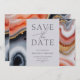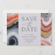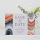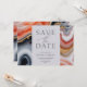 Contemporáneo guardar la invitación de fecha con un cuadrado gris claro en el que toda tu información está elegantemente escrita sobre un fondo abstracto de mármol agate. Los detalles del ágate están en tonos naranja y azul con acentos dorados. Visita nuestra tienda para ver más artículos de esta colección de bodas.