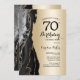 Invitación a la fiesta de cumpleaños número 70 de los negros y los dorados. Diseño elegante y moderno con fondo de mármol de piedra en el fondo de la geoda, oro falso purpurina y letra de escritura tipográfica. La carta de invitación de moda es perfecta para una elegante celebración del cumpleaños de las mujeres. Invitaciones Zazzle impresas o una plantilla imprimible digital de descarga instantánea.