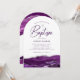 Estas elegantes y hermosas invitaciones al bautismo en forma de arco presentan un aspecto geodésico de agate morado, con acentos falsos de plata y cruz, y una caligrafía púrpura a juego.