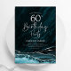 Invitación a la fiesta de cumpleaños número 60 en verde azulado y plata. Elegante diseño moderno con aguas turquesas agate fondo geodésico de mármol, plateado falso purpurina y tipografía de escritura. La carta de invitación de moda es perfecta para una elegante celebración del cumpleaños de las mujeres. Invitaciones Zazzle impresas o una plantilla imprimible digital de descarga instantánea.