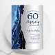 Invitación a la fiesta de cumpleaños número 60 en azul marino y plata. Elegante diseño moderno con acuarela azul real agate mármol fondo geodésico, oro falso purpurina y letra de escritura tipográfica. La carta de invitación de moda es perfecta para una elegante celebración del cumpleaños de las mujeres. Invitaciones Zazzle impresas o una plantilla imprimible digital de descarga instantánea.