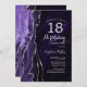 Invitación a la fiesta de cumpleaños 18 años morado y plata. Elegante diseño moderno con fondo geodésico de mármol agate acuarela, letra falsa purpurina plateada y tipografía. La carta de invitación de moda es perfecta para una elegante celebración del cumpleaños de las mujeres. Invitaciones Zazzle impresas o una plantilla imprimible digital de descarga instantánea.