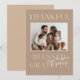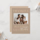 Celebre la temporada de gratitud con esta tarjeta de felicitación moderna del Día de Acción de Gracias. Con un fondo beige neutral y las palabras Agradecido, Bendito, Agradecido en negrita, este diseño enmarca hermosamente la foto de su familia favorita. Personalice con el nombre de su familia y un saludo para una forma sincera de compartir sus bendiciones en este Día de Acción de Gracias.