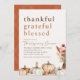 Celebremos la temporada de gratitud con esta Invitación de Acción de Gracias por la Bendición Caída. Diseñado con calabazas acuáticas, flores de otoño y cálidos tonos rústicos, este elegante tema de otoño aporta un encanto acogedor a su reunión de vacaciones. Perfecto para una cena familiar de Acción de Gracias, de temporada o fiesta de cosecha otoño, esta invitación editable es una manera elegante de dar la bienvenida a los seres queridos a la mesa.