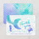 Agradece a todos tus familiares y amigos por venir a la fiesta de cumpleaños de sirena submarina de tu hija con estas tarjetas de agradecimiento con acuarela azul teñida y púrpura.