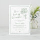 Invite a los huéspedes a una encantadora celebración con esta Invitación a la ducha recién salida del mercado, perfecta para la novia que está oficialmente fuera del mercado. Con ramos de flores dibujados a mano en un verde salado suave, este diseño caprichoso y moderno le da vida a la belleza de un mercado rústico de agricultores. Es una manera elegante de marcar el tono para una ducha de novias alegre y llena de amor - por favor siéntase libre de contactar si necesita ayuda para personalizar!