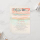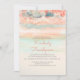 Invitaciones a la ducha de novias en la playa con agua de color rosa y azul océano abstracto.