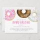 Invite a la familia y amigos con esta invitación al brunch para bebés de personalizable. Tiene acuarelas rosas, chocolate blanco y donuts de chocolate con salpicaduras de colores y una tipografía simple. Personalice esta invitación a donut baby brunch añadiendo un nombre, fecha, hora, lugar y otros detalles. Esta colorida invitación al brunch de los bebés es perfecta para las duchas de chica.