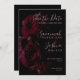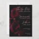Invitación de Ahorro de Fecha de Boda con Acuarela Floral Negra, ideal para bodas de primavera, verano, otoño o invierno. Estas invitaciones de "guárdalo" presentan una ilustración de acuarela de rosa floral oscura. Personalice la tarjeta con los nombres de la futura novia y el futuro novio en tipografía de letra cursiva elegante. Los colores incluyen bayas, rosa, rojo y negro. Por favor, consulte la foto para referencia de color.