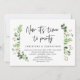 Tarjeta de invitación de boda íntima con tema de jardín de verano con hojas verdes y escritura negra moderna (Ahora es hora de fiesta). Es perfecta para su recepción de boda íntima / fiesta de celebración después de la boda. Agregue sus detalles en fuente / letra negra coincidente.